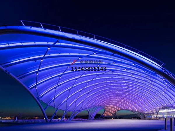 ETFE膜結(jié)構(gòu)材料無定形,只有維持張力平衡的形狀才是穩(wěn)定的造型,可充分發(fā)揮膜結(jié)構(gòu)材料抗拉強度高的特點,應用合理的支撐結(jié)構(gòu)體系。