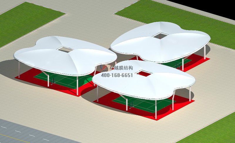 結(jié)構(gòu)連接配件:所有膜結(jié)構(gòu)配件全部采用鍍鋅材料,所用螺栓全部鍍鋅高強螺絲,所有連接部件全都用鋁型材做壓板。所有帽頂封膜部分全部采用上海陶氏生產(chǎn)高強度耐候膠,嚴苛的選材鑄就一流品質(zhì)。