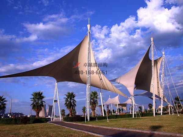 項(xiàng)目結(jié)構(gòu)形式:骨架式膜結(jié)構(gòu)景觀,自然排水。