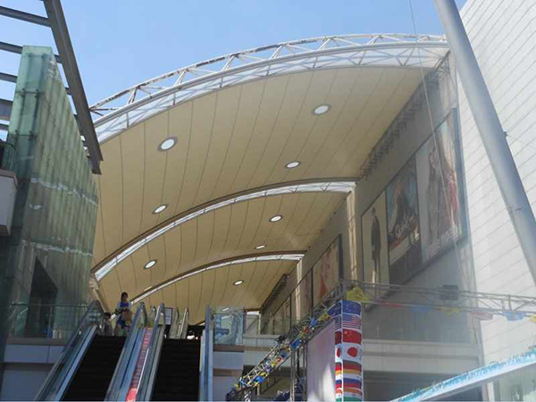 崇左商場(chǎng)膜結(jié)構(gòu)、商業(yè)街頂蓋膜結(jié)構(gòu)、步行街走廊頂棚、罩棚、遮陽棚、雨棚工程案例