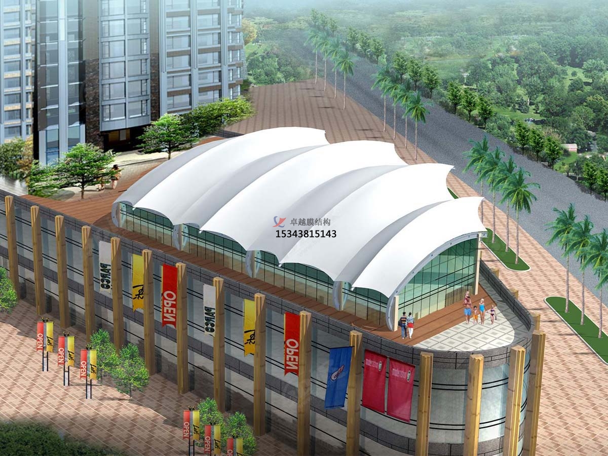 2、但是,隨著膜結構使用年限的添加,其膜材功能會有必定程度的下降,當積雪較大時,就容易發(fā)生陷落狀況,使膜布直接損壞,即便沒壓塌,也會引起膜布變形。