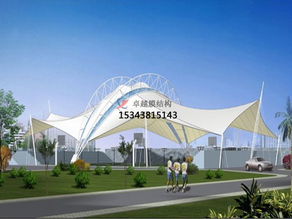 膜結構雨棚是一種全新的建筑結構形式,它集建筑學、結構力學、精細化工與材料科學、計算機技術等為一體,具有很高技術含量。其曲面可以隨著建筑師的設計需要任意變化,結合整體環(huán)境,建造出標志性的形象工程。