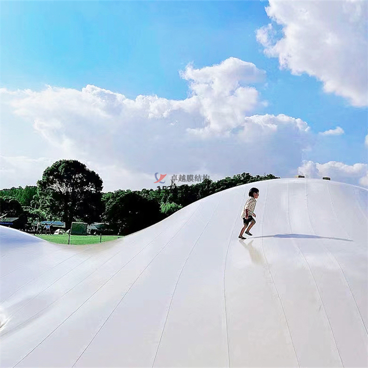 蹦蹦云是新型無動力兒童互動體驗設(shè)施,似朵朵白云、形象新穎;整體采用的膜結(jié)構(gòu)拼接而成??杀摹⒖苫?、可爬。適合很多年齡段兒童和成人使用。