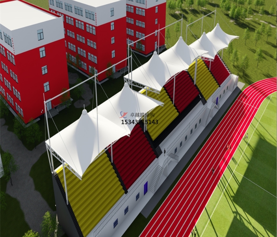 此外,膜結(jié)構(gòu)看臺(tái)還具備出色的聲學(xué)效果。膜材料對(duì)聲音的反射與吸收特性,使得看臺(tái)內(nèi)的聲音分布更加均勻,觀眾能夠清晰地聽到比賽現(xiàn)場(chǎng)的每一個(gè)細(xì)節(jié),無(wú)論是運(yùn)動(dòng)員的奔跑聲、球與地面的撞擊聲,還是觀眾的歡呼聲,都能得到完美的呈現(xiàn)。