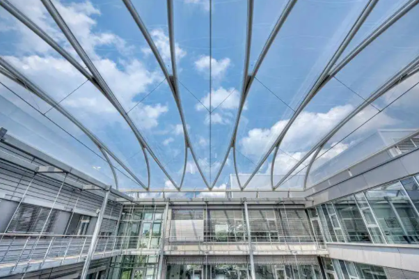 透光性和遮陽(yáng)性:PTFE膜材料具有一定的透光性,可以有效利用自然光線,減少能源消耗。此外,它還能提供良好的遮陽(yáng)性能,降低建筑內(nèi)部的熱量積聚,提高了室內(nèi)舒適度。