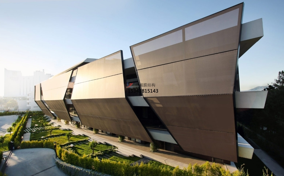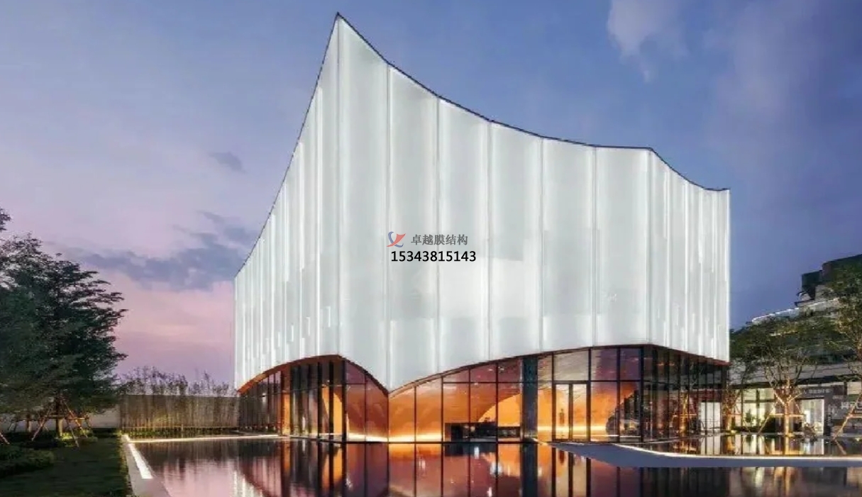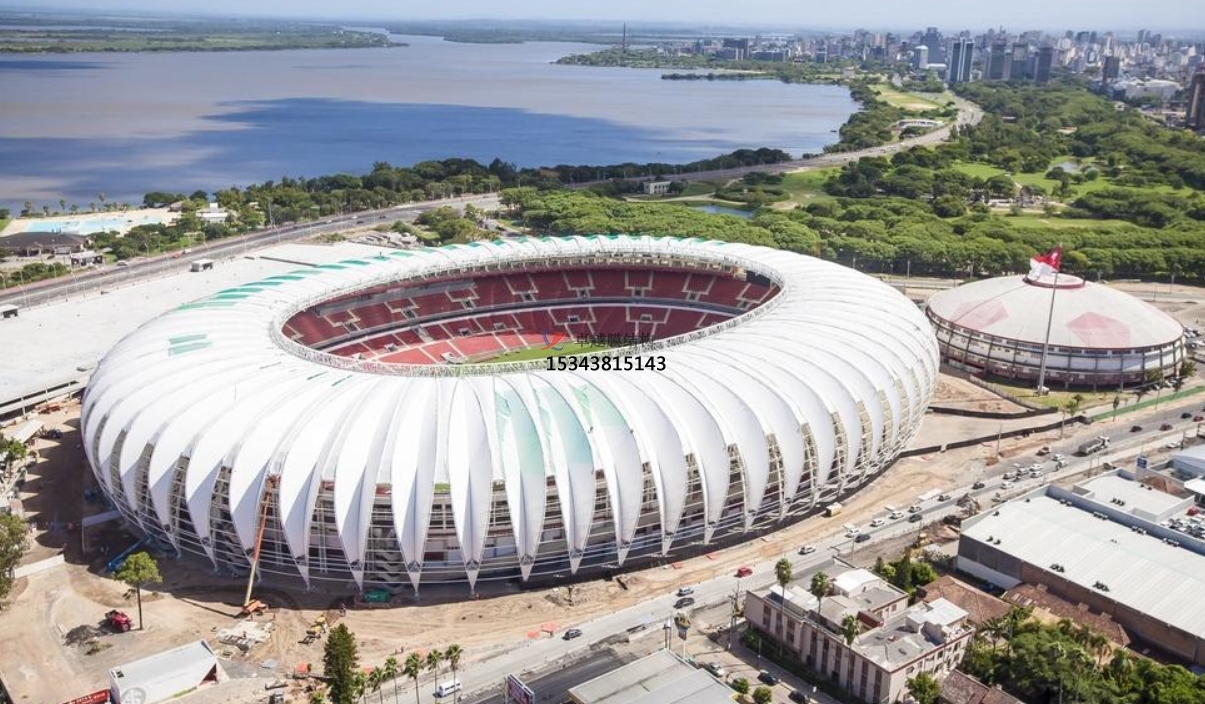 此外,PTFE膜結(jié)構(gòu)的薄膜具有一定的透光性,能夠有效利用自然光線,降低室內(nèi)照明能耗,遮擋紫外線和紅外線,減少太陽(yáng)輻射對(duì)建筑內(nèi)部的熱負(fù)荷,實(shí)現(xiàn)能源的節(jié)約和環(huán)境的保護(hù);且PTFE膜結(jié)構(gòu)能夠通過不同的張拉和固定方式,創(chuàng)造出各種形態(tài)的建筑設(shè)計(jì)。它可以形成曲線、弧線、折線等多樣化的形狀,滿足建筑師對(duì)于獨(dú)特外觀和創(chuàng)新設(shè)計(jì)的需求。