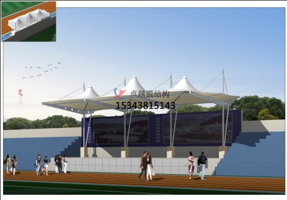 張拉膜看臺(tái)主要用于各類地方體育場(chǎng)主席臺(tái)雨棚,各類學(xué)校體育場(chǎng)看臺(tái)雨棚遮蓋,我公司是國(guó)內(nèi)較早從事大懸挑張拉膜結(jié)構(gòu)看臺(tái)設(shè)計(jì)施工的專業(yè)廠家,下面介紹一下我們?cè)阱ш?yáng)縣周邊縣市完工的一些張拉膜看臺(tái)設(shè)計(jì)施工案例,我公司先后在濮陽(yáng)縣周邊承接了濮陽(yáng)縣第三中學(xué)膜結(jié)構(gòu)看臺(tái)雨篷/主席臺(tái)/舞臺(tái)安裝雨棚、濮陽(yáng)縣實(shí)驗(yàn)中學(xué)張拉膜張拉膜看臺(tái)罩棚、濮陽(yáng)縣教師進(jìn)修學(xué)校張拉膜看臺(tái)遮陽(yáng)棚等設(shè)計(jì)施工項(xiàng)目,簡(jiǎn)介如下: