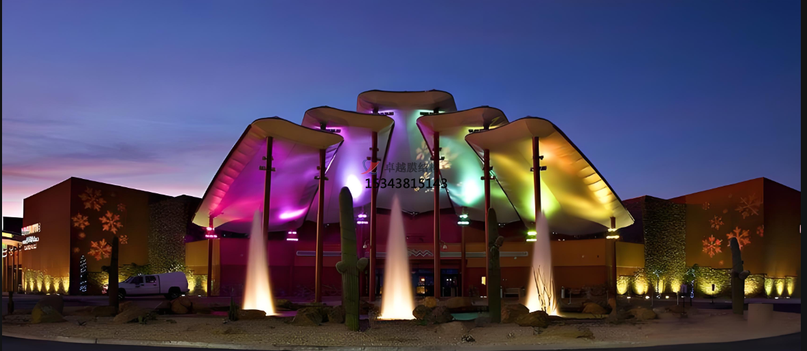 膜材性能:PVDF 膜材有多種性能指標(biāo)需要考慮。其強(qiáng)度應(yīng)滿足結(jié)構(gòu)承載要求,包括拉伸強(qiáng)度、撕裂強(qiáng)度等;耐久性方面,要能抵抗紫外線、老化、腐蝕等環(huán)境因素的影響,保證膜結(jié)構(gòu)在設(shè)計(jì)使用年限內(nèi)性能穩(wěn)定;自潔性要好,便于保持膜面清潔,減少維護(hù)成本;此外,還要根據(jù)建筑的使用要求,選擇合適的透光率和色彩。