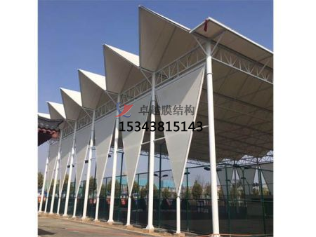 在安裝過程中,需要注意控制膜材料的張力和位置,保證其均勻分布和穩(wěn)定支撐。同時,還需要進(jìn)行節(jié)點連接和加固,整個罩棚的穩(wěn)定性和安全性。最后,需要進(jìn)行驗收和保養(yǎng),保證膜結(jié)構(gòu)的長期使用和維護(hù)。