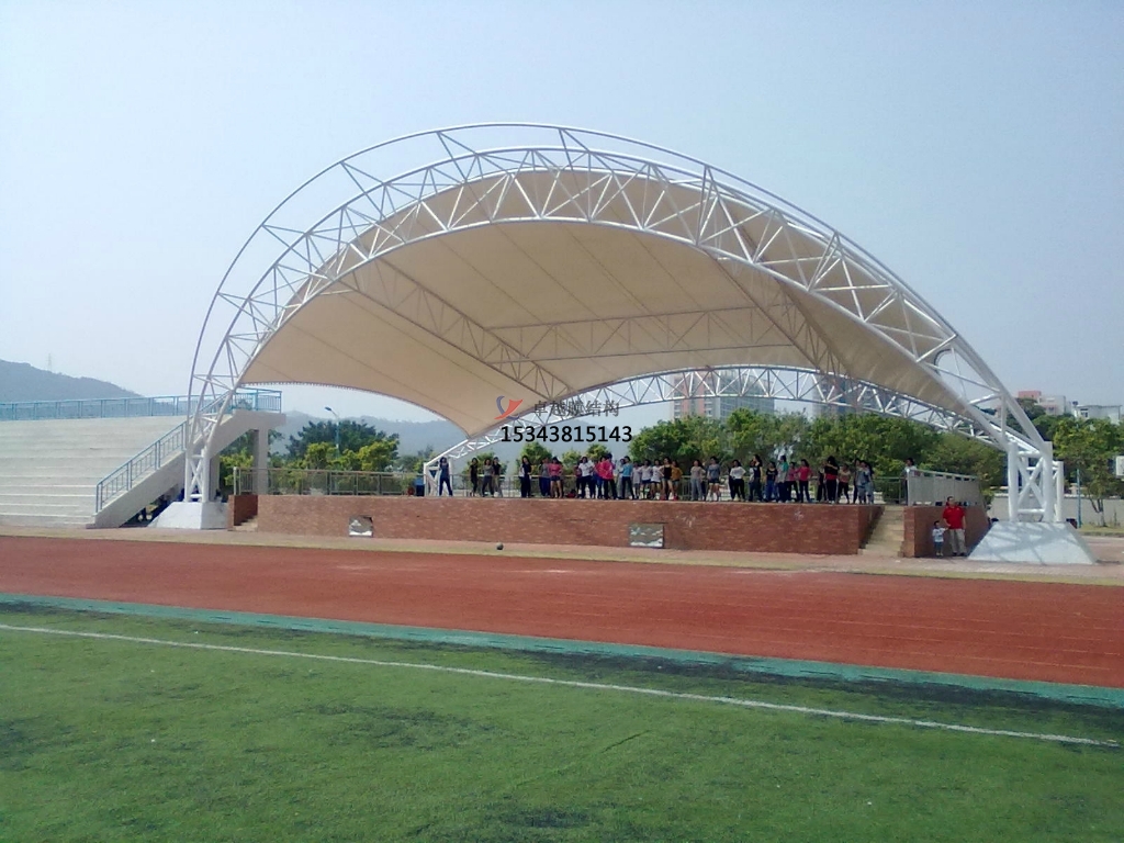 張拉膜看臺(tái)主要用于各類地方體育場(chǎng)主席臺(tái)雨棚,各類學(xué)校體育場(chǎng)看臺(tái)雨棚遮蓋,我公司是國(guó)內(nèi)較早從事大懸挑張拉膜結(jié)構(gòu)看臺(tái)設(shè)計(jì)施工的專業(yè)廠家,下面介紹一下我們?cè)谇鼗蕧u市周邊縣市完工的一些張拉膜看臺(tái)設(shè)計(jì)施工案例,我公司先后在秦皇島市周邊承接了秦皇島廣播電視大學(xué)看臺(tái)雨棚、燕山大學(xué)附屬中學(xué)張拉膜看臺(tái)罩棚、秦皇島市第三中學(xué)張拉膜看臺(tái)遮陽(yáng)棚張拉膜看臺(tái)遮陽(yáng)棚等設(shè)計(jì)施工項(xiàng)目,簡(jiǎn)介如下: