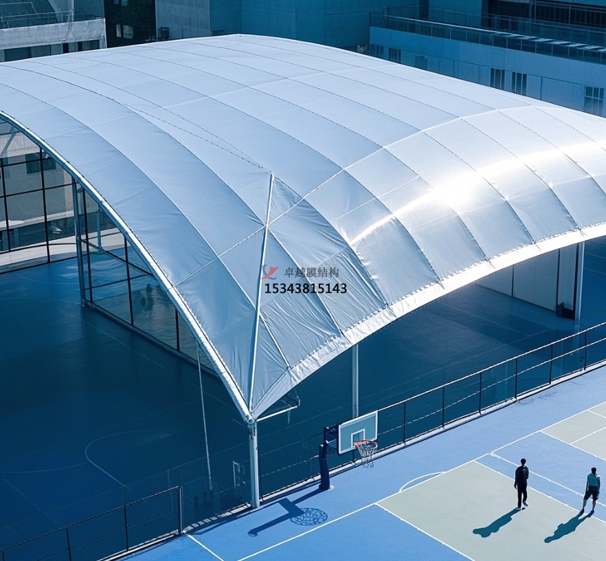 在體育設(shè)施不斷追求立異與有用的今日,籃球場膜結(jié)構(gòu)頂棚憑借其獨特的優(yōu)勢,逐步成為很多籃球場館的抱負(fù)選擇。它不僅為籃球運動供給了舒適的環(huán)境,還在建筑美學(xué)和節(jié)能環(huán)保等方面展現(xiàn)出巨大價值。