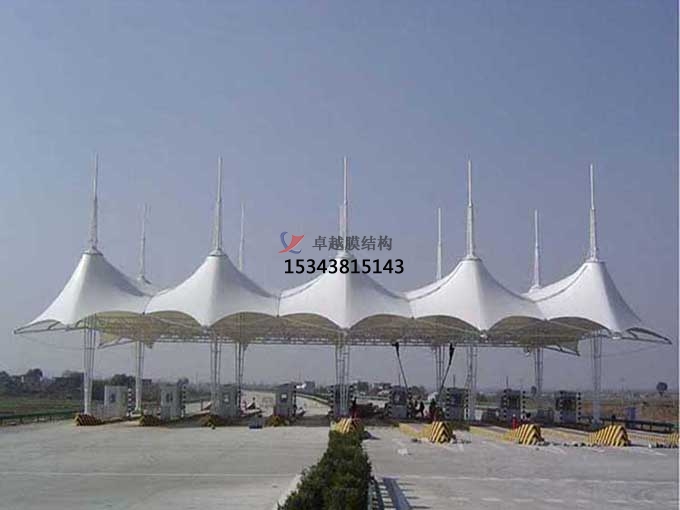 高速公路收費(fèi)站在城市的進(jìn)口處,規(guī)劃具有自己城市鮮明特征和文明神韻的建筑方式乃是每個(gè)城市開展的很好的選之作。而張拉膜以自己多變的特性,極具現(xiàn)代感又展示了一個(gè)城市的發(fā)展理念和思路。