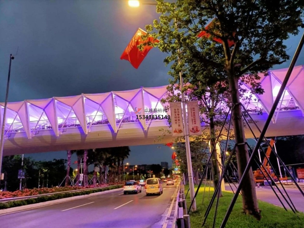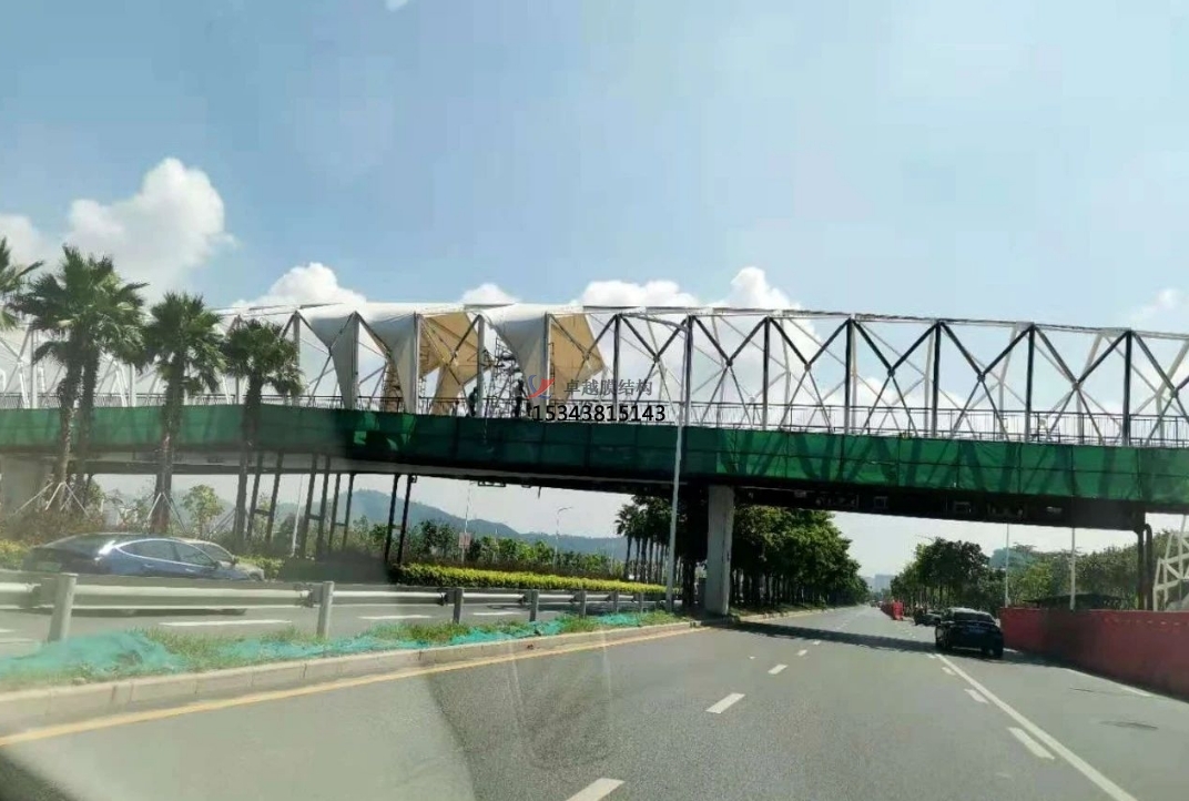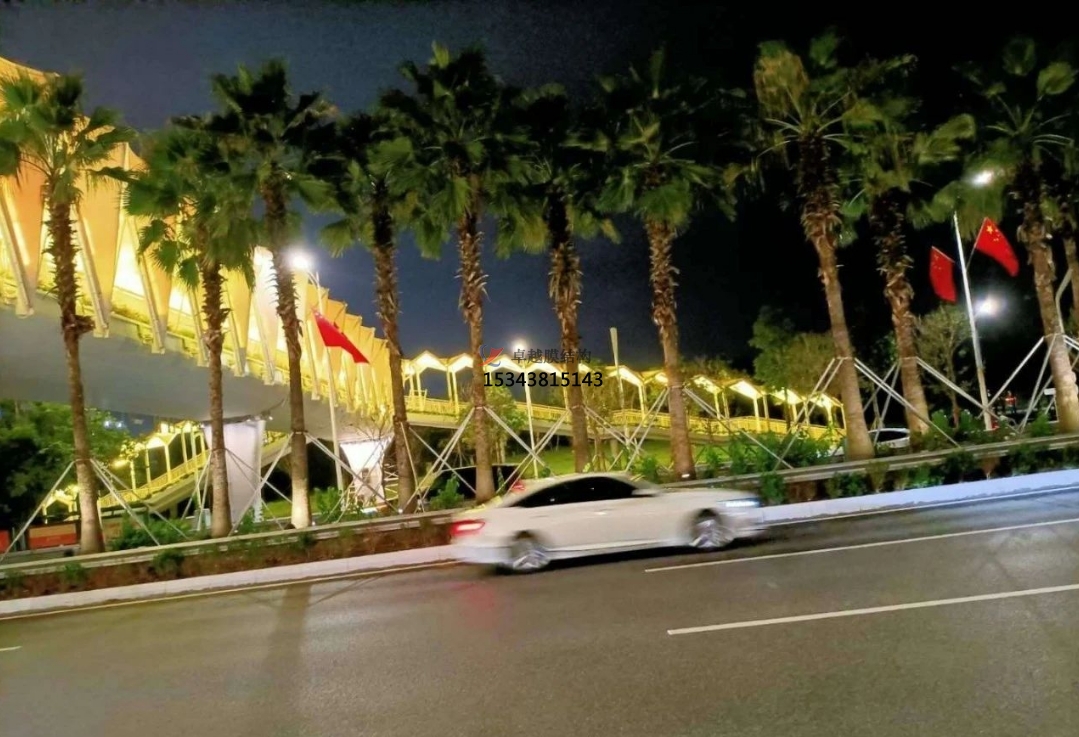 為了保質(zhì)、保量、保證工期、保安全的情況下順利的把項(xiàng)目交到業(yè)主手中,把施工人員分成兩班晝夜不分,日夜加班,還要克服現(xiàn)場(chǎng)的高溫,施工節(jié)點(diǎn)的困難,而且每片膜材的尺寸也不相同,為了膜材裁剪精準(zhǔn),設(shè)計(jì)師每跨每跨的量尺寸,又復(fù)合尺寸,確保了天橋立面膜結(jié)構(gòu)的安裝工程順利進(jìn)行。