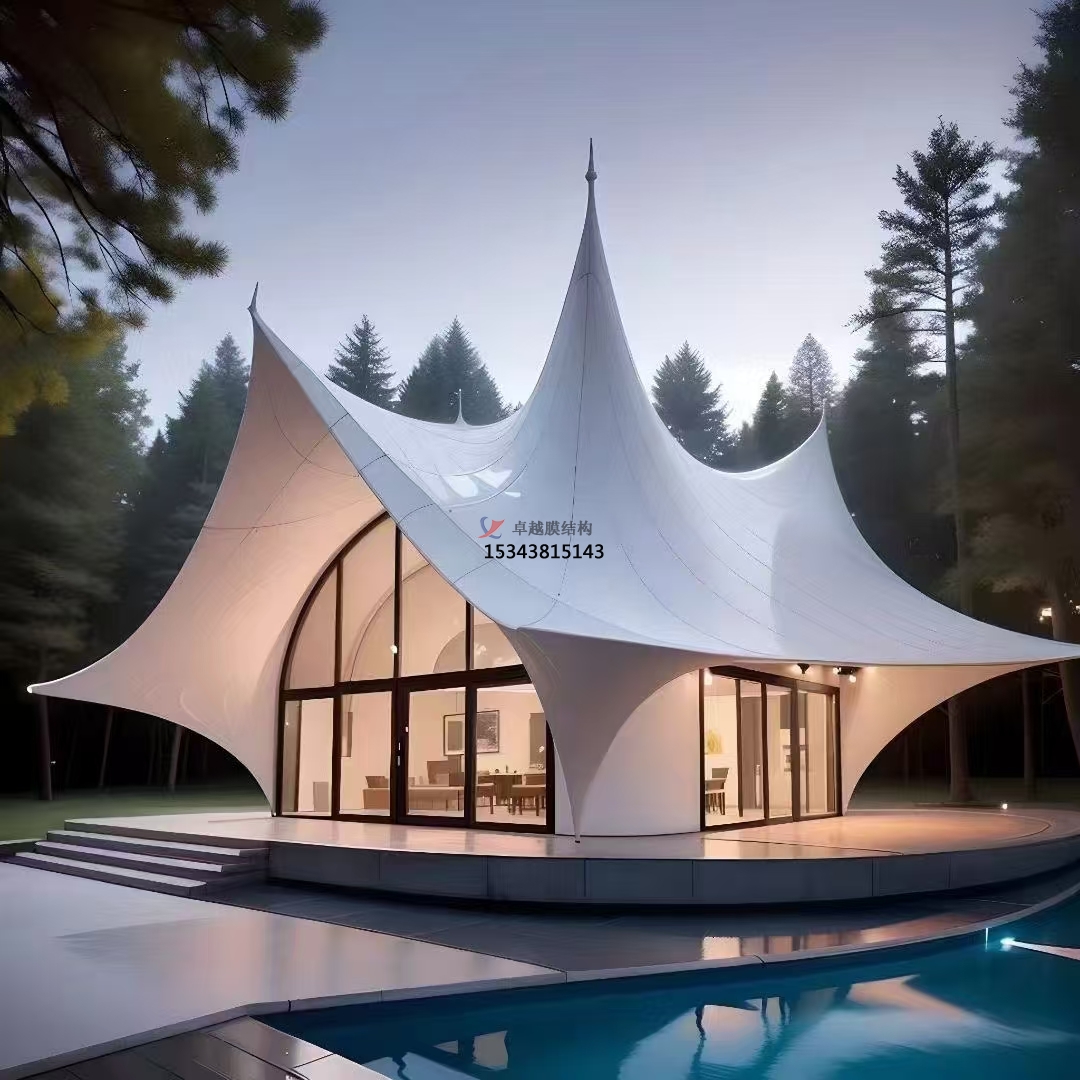 山區(qū)景觀中,膜結(jié)構(gòu)與山體輪廓契合無間。登山步道休息亭采用與山勢呼應(yīng)的造型,如順山勢起伏的波浪形或類山峰輪廓的三角形,仿若自然生長于山體之中。膜材顏色選取與巖石、植被相近色調(diào),強(qiáng)化與自然景觀協(xié)調(diào)性。海濱景觀里,膜結(jié)構(gòu)與大海沙灘相互映襯。海邊沙灘浴場遮陽棚以通透膜材構(gòu)建,人們遮陽同時(shí)飽覽海景,輕盈造型與海浪動(dòng)態(tài)呼應(yīng),海風(fēng)吹拂下?lián)u曳生韻,成為海濱景觀重要組成部分。