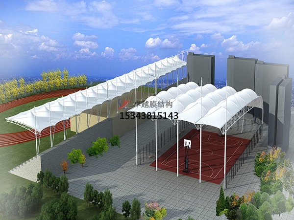 膜結(jié)構(gòu)車棚膜結(jié)構(gòu)所用的膜材料為具有、阻燃、耐久、自潔等特性的復合材料,一般由基布和涂層二部分組成?;贾饕捎镁壑w維或玻璃纖維絲編織而成,有平織和絞等多種編織方法,不同的膜結(jié)構(gòu)車蓬編織方法影響著膜材料的經(jīng)緯向力學性能指標,膜的抗拉強度和抗撕裂強度等;涂層材料主要有聚四氟乙烯和聚氯乙烯,在一定程度上提高了膜材料各項強度指標,為提高膜材料的耐久、自潔等特性,表面往往有一層氟涂層或硅涂層,膜材料的耐火、耐久及防水、自潔等性能,決定著膜材料的物理特性。