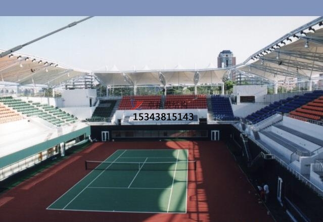 德國漢堡網(wǎng)球場膜結(jié)構(gòu)展開面積約10000平方米,采用PVC(PVDF面層)膜材。并且選用能夠滿足要求的更薄的膜材型號。屋蓋是可開合式的膜結(jié)構(gòu),可縮進的膜結(jié)構(gòu)棚蓋可以在任何惡劣的天氣時,將棚蓋關(guān)上;在天氣轉(zhuǎn)好時打開。以確保在任何季節(jié)里網(wǎng)球比賽的舉行,或避免時重要的賽事中斷或延遲。此建筑充分發(fā)揮了索膜結(jié)構(gòu)重量輕、造型靈活的優(yōu)點。