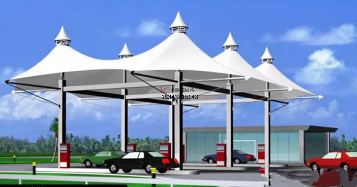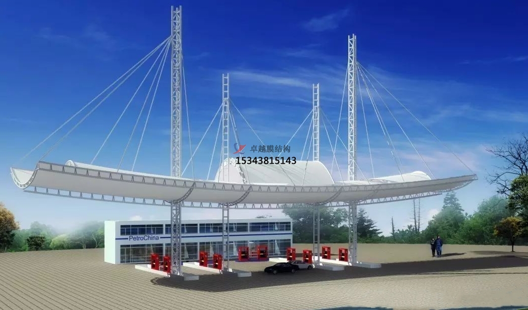 加油站膜結(jié)構(gòu)憑借其顯著區(qū)別與其他結(jié)構(gòu)的獨特外形,能迅速的抓住顧客的眼球,瞬時拉近與顧客的距離。