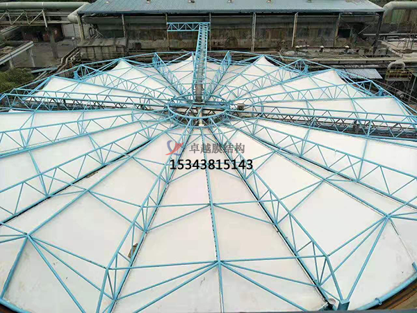 1.抗腐蝕性強,密封性好。傳統(tǒng)污水池加蓋方式均有腐蝕性問題,如陽光板、玻璃鋼等,每隔一兩年都會出現(xiàn)被腐蝕,密封性不佳問題。而支吊膜采用的膜材料是根據(jù)污水池氣體成分專門生產(chǎn)的,可有效杜絕腐蝕問題,使用年限長達15-25年。