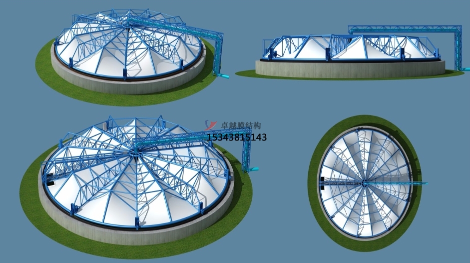 鋼結(jié)構(gòu)制作和膜體的加工都在工廠進(jìn)行,加工質(zhì)量得到可靠保障。現(xiàn)場安裝時間短,減少了對場地的占用。尤其是舊池體改造項目可采取結(jié)構(gòu)整體吊裝,不影響池體內(nèi)部的設(shè)備運(yùn)轉(zhuǎn)。