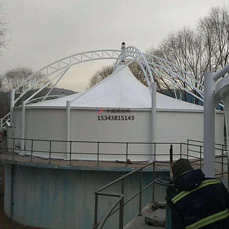 鋼架反吊膜結(jié)構(gòu)是專門用于污水池加蓋密閉的一種膜結(jié)構(gòu)形式,結(jié)構(gòu)形式新穎,防腐耐霉,由鋼結(jié)構(gòu)、膜結(jié)構(gòu)及安裝輔件構(gòu)成,根據(jù)不同污水池現(xiàn)場條件進(jìn)行個性化設(shè)計安裝。鋼結(jié)構(gòu)在外部形成穩(wěn)定受力結(jié)構(gòu),膜材料反吊與機(jī)構(gòu)內(nèi),隔絕廢氣對剛架構(gòu)的腐蝕。鋼架反吊膜分為圓形反吊膜和方形反吊膜,其中方形反吊膜又分為拱形及吊帽結(jié)構(gòu)。