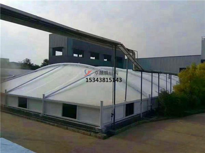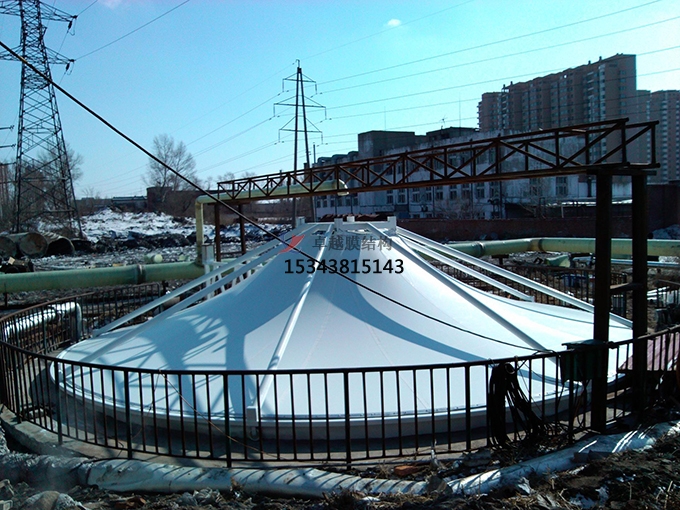 2.確認膜材的品種:污水池加蓋除臭選用的膜材有許多中,應根據(jù)池體的跨度挑選適宜的膜材才干達到預期的作用.一般,關于大跨度而言,選用污水池專用膜材氟碳纖維膜比較適宜,因為這種膜材具有很強的抗腐蝕能力,能對池內(nèi)廢氣起到抗腐蝕的作用,無形中保證了膜材的使用壽命;