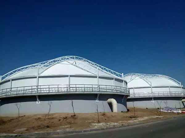 眼前的風(fēng)景得益于先進(jìn)的膜結(jié)構(gòu)污水池加蓋工程,實行的是全封閉密罩,同時安裝相應(yīng)惡臭氣體的收集凈化裝置,防止臭氣外溢,讓人們的生活少一絲憂慮,多一份健康。