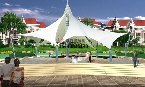 張拉膜景觀(Tensioned Membrane structure),是以建筑織物,即膜材料為張拉主體,與支撐構(gòu)件或拉索共同組成的結(jié) 構(gòu)體系,它以其新奇獨(dú)特的建筑造型,良好的受力特點(diǎn),成為大跨度空間結(jié)構(gòu)的主要形式之一。