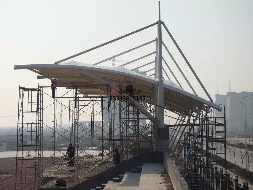 張拉膜看臺(tái)主要用于各類地方體育場主席臺(tái)雨棚,各類學(xué)校體育場看臺(tái)雨棚遮蓋,我公司是國內(nèi)較早從事大懸挑張拉膜結(jié)構(gòu)看臺(tái)設(shè)計(jì)施工的專業(yè)廠家,下面介紹一下我們在孝感周邊縣市完工的一些張拉膜看臺(tái)設(shè)計(jì)施工案例,我公司先后在孝感周邊承接了孝感市第高級(jí)中學(xué)看臺(tái)雨棚、湖北省孝感高級(jí)中學(xué)張拉膜張拉膜看臺(tái)罩棚、孝感廣播電視大學(xué)張拉膜看臺(tái)遮陽棚張拉膜看臺(tái)遮陽棚等設(shè)計(jì)施工項(xiàng)目,簡介如下: