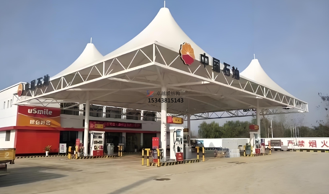 2. 抗風防震:膜結(jié)構頂棚設計科學,可承受高達每平方米2000千克的均布荷載,抗風等級達到10級,同時具備良好的抗震性能,確保加油站即使在極端天氣條件下也能安全穩(wěn)定運行。