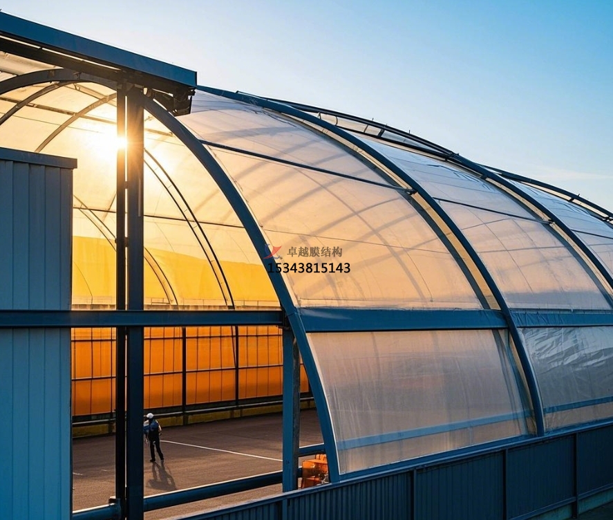 在后期維護(hù)上,膜結(jié)構(gòu)罩棚同樣節(jié)省費(fèi)用。膜材具有自潔性,表面不易附著灰塵與污漬,雨水沖刷即可保持清潔。并且,膜材耐候性強(qiáng),耐腐蝕、抗老化,使用壽命可達(dá) 15 - 25 年。日常維護(hù)只需定期檢查膜材與支撐結(jié)構(gòu)狀況,維護(hù)成本大幅降低。據(jù)統(tǒng)計,使用膜結(jié)構(gòu)罩棚的垃圾中轉(zhuǎn)站,每年維護(hù)費(fèi)用可比傳統(tǒng)建筑形式的中轉(zhuǎn)站節(jié)省 30% - 50% 。