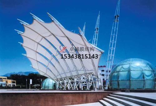 張拉膜景觀是建筑結(jié)構(gòu)中**發(fā)展起來(lái)的一種形式,它以性能優(yōu)良的織物為材料,或是向膜內(nèi)充氣,由空氣壓力支撐膜面,或是利用柔性鋼索或剛性支撐結(jié)構(gòu)將面繃緊,從而形成具有一定剛度、能夠覆蓋大跨度空間的結(jié)構(gòu)體系。