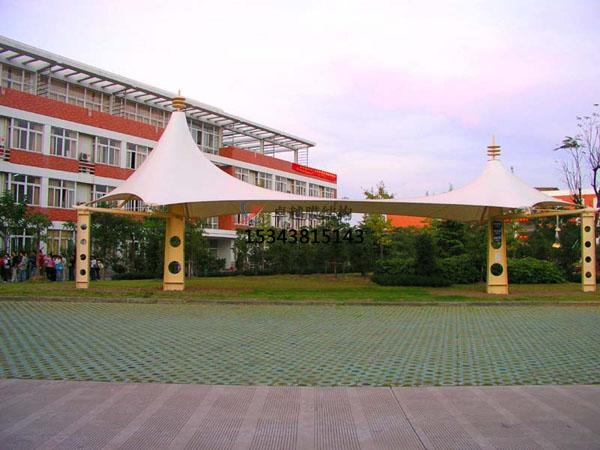 商業(yè)廣場(chǎng)雨棚搭建以其輕盈飄逸的造型、柔美并帶有力量的曲線和大跨度和大空間的鮮明個(gè)性和標(biāo)識(shí)性,并與園林景觀溶為一體。創(chuàng)造出讓人們盡情享受的快樂(lè)空間。充分展示了結(jié)構(gòu)構(gòu)件清晰受力的藝術(shù)之美,它巧妙的整合周圍的環(huán)境,給人們一種高貴典雅、浪漫溫馨之感。另外由于張拉膜材料本身特有的顯色性,在夜間彩燈的映射下能形成絢麗繽紛的景觀。不僅為人們提供遮陽(yáng)避雨的空間。同時(shí),更由于這種生動(dòng)活潑的造型能給人們帶來(lái)時(shí)尚、輕松的休閑感受,所以廣受歡迎。