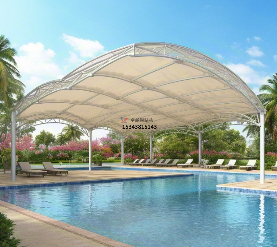 游泳池膜結(jié)構(gòu)遮陽(yáng)棚的款式多樣,包括單坡、雙坡、穹頂、懸臂等多種款式。不同款式的遮陽(yáng)棚在造型、結(jié)構(gòu)、用途等方面都有所不同,例如單坡款式的遮陽(yáng)棚一般用于遮陽(yáng),雙坡款式的遮陽(yáng)棚則可用于遮陽(yáng)和擋雨,穹頂款式的遮陽(yáng)棚則具有較好的觀賞性,懸臂款式的遮陽(yáng)棚則可提供較大的開(kāi)放空間。這些多樣化的選擇,使得泳池遮陽(yáng)棚能夠滿(mǎn)足不同場(chǎng)地和需求,實(shí)現(xiàn)個(gè)性化定制。