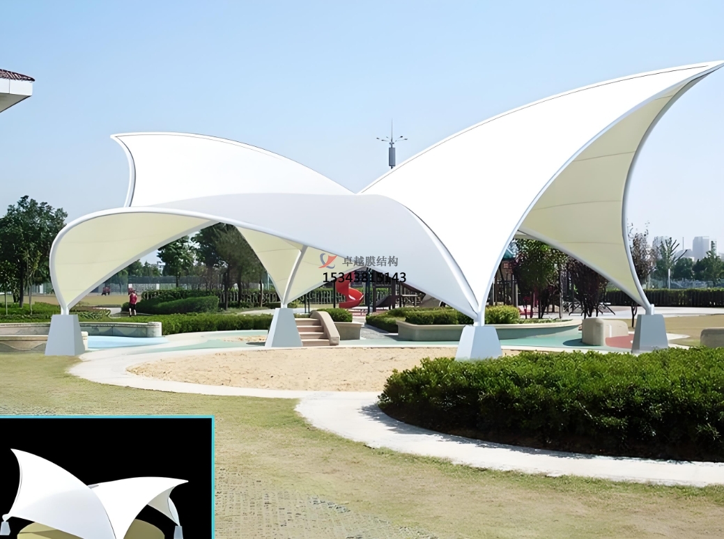 膜結構景觀設計正是通過對城市中每處小的局部設計與對城市環(huán)境總體的考慮來實現(xiàn)的,并終端達到城市整體性環(huán)境的統(tǒng)一。該膜結構只有在城市整體空間環(huán)境中創(chuàng)作,做到空間與實體的結合,才能產(chǎn)生完好的建構。
