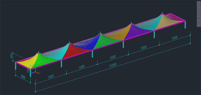 這個(gè)是單帽七彩滑道膜結(jié)構(gòu)雨棚