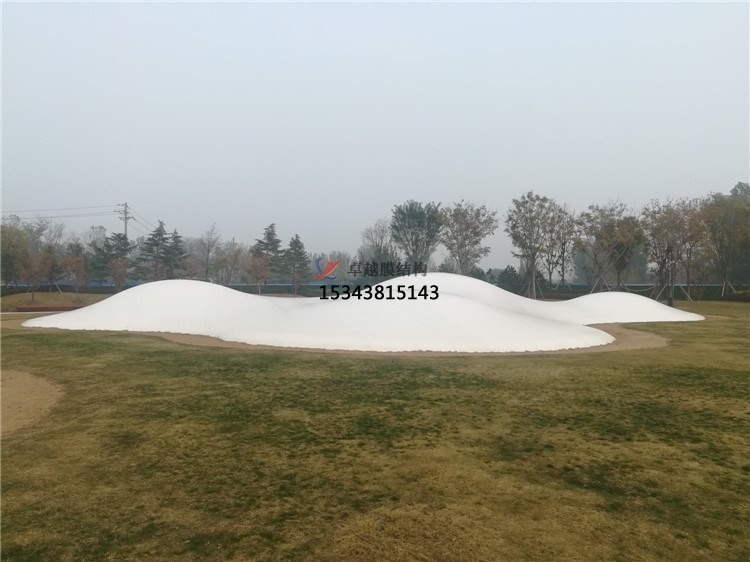 蹦蹦云是長久固定在沙土地面上的,它是由外膜、內(nèi)膜、送風(fēng)管道、泄壓管道、地面膜材錨固裝置、膜內(nèi)緩沖軟墊、膜外緩沖沙坑、供風(fēng)與壓力控制集成房子等組成的。不懼風(fēng)雨等惡略天氣。遠(yuǎn)看是景觀,踩上是蹦床,兒童蹦蹦云樂園的景觀和游樂雙重屬性讓它適合多種使用環(huán)境,涵蓋景區(qū)公園、農(nóng)業(yè)采摘園、休閑農(nóng)莊、農(nóng)家樂、生態(tài)園、觀光園、度假村、游樂園、特色小鎮(zhèn)等大型室外開放式親子互動(dòng)游樂設(shè)施的需要。
