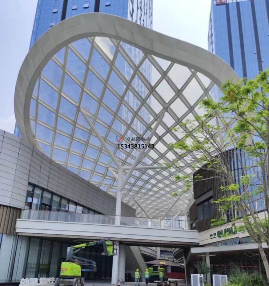 膜結構以其獨特的輕質材料與精妙的結構設計,于商業(yè)街之上輕盈鋪展,仿佛是天際線下的一抹流云,既輕盈又不失穩(wěn)重。在步行街的穹頂之下,膜結構以其柔和的曲線與透光的材質,巧妙地界定了空間,同時讓自然光與人工照明交織成一幅流動的光影畫卷,為購物者營造出一處既私密又開放的夢幻之境。