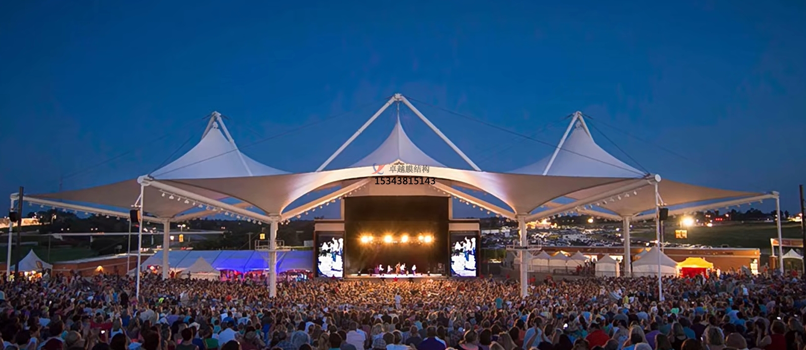 舞臺(tái)膜結(jié)構(gòu)遮陽(yáng)棚廣泛應(yīng)用于各種戶外演出和活動(dòng)中,如音樂(lè)會(huì)、戲劇表演、舞蹈演出等。此外,它還可以作為臨時(shí)展覽、會(huì)議等活動(dòng)的遮陽(yáng)設(shè)施。隨著戶外活動(dòng)和露天演出的增多,舞臺(tái)膜結(jié)構(gòu)遮陽(yáng)棚的實(shí)用性也越發(fā)凸顯。