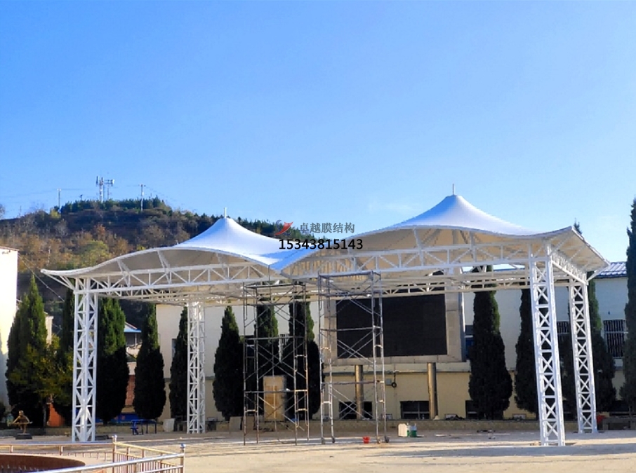 增強(qiáng)舞臺(tái)效果:舞臺(tái)膜結(jié)構(gòu)遮陽(yáng)棚的造型多樣、美觀大方,可以成為舞臺(tái)上的一個(gè)重要視覺焦點(diǎn)。通過(guò)與舞臺(tái)布景、燈光等元素的結(jié)合,遮陽(yáng)棚能夠增強(qiáng)整體的舞臺(tái)效果,為觀眾帶來(lái)更加震撼的演出體驗(yàn)。