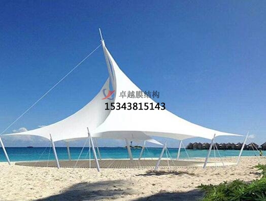 景觀膜結構遮陽棚建筑所采用的膜材具有zhuo越的阻燃性和耐高溫性,故能很好的滿足防火要求。由于結構自重輕,又為柔性結構且有較大變形能力,故抗震性能好。 工期短:膜材裁剪。拼合成型及骨架的鋼結構、鋼索均在工廠加工制作,現(xiàn)場只需組裝,施工簡便,故施工周期比傳統(tǒng)建筑短。