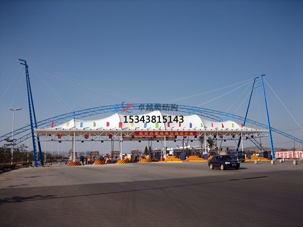膜結(jié)構(gòu)(Membrane)是20世紀(jì)中期發(fā)展起來(lái)的一種新型建筑結(jié)構(gòu)形式,膜結(jié)構(gòu)收費(fèi)站是由多種高強(qiáng)薄膜材料及加強(qiáng)構(gòu)件(鋼架、鋼柱或鋼索)通過(guò)一定方式使其內(nèi)部產(chǎn)生一定的預(yù)張應(yīng)力以形成某種空間形狀,作為覆蓋結(jié)構(gòu),并能承受一定的外荷載作用的一種空間結(jié)構(gòu)形式。膜結(jié)構(gòu)是建筑結(jié)構(gòu)中新發(fā)展起來(lái)的一種形式,自從1970年代以來(lái), 膜結(jié)構(gòu)在國(guó)外已逐漸應(yīng)用于體育建筑、商場(chǎng)、展覽中心、交通服務(wù)設(shè)施等大跨度建筑中。