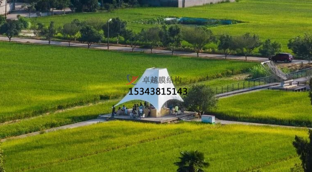 設(shè)計(jì)方于是設(shè)想了一種快速搭建的輕型結(jié)構(gòu):塔(樓梯)在中間和架在水池上的操作空間形成一個(gè)鋼結(jié)構(gòu)的整體,樁基打到池底以下的持力層,形成穩(wěn)定的核心結(jié)構(gòu);塔頂和平臺(tái)的四角以張拉膜結(jié)構(gòu)和鋼索拉接就是亭子的屋頂,形成輕質(zhì)的半透明的外部結(jié)構(gòu)。建成后塔亭經(jīng)常聚集了很多人,有當(dāng)?shù)氐拇迕?,有游客,還有小動(dòng)物。他們或談天,或嬉鬧,或休息,或登上塔頂遠(yuǎn)望,這正是設(shè)計(jì)最初的愿景。