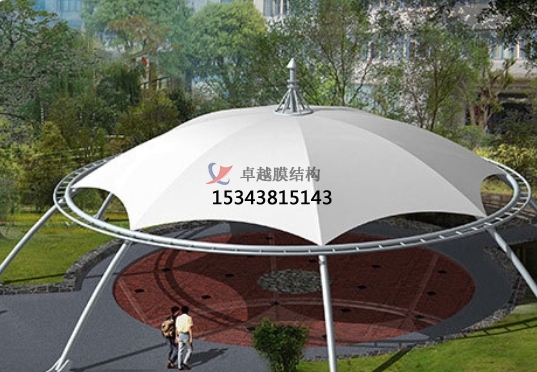 膜結(jié)構(gòu)景觀棚以其輕盈飄逸的造型、柔美并帶有力量的曲線和大跨度和大空間。